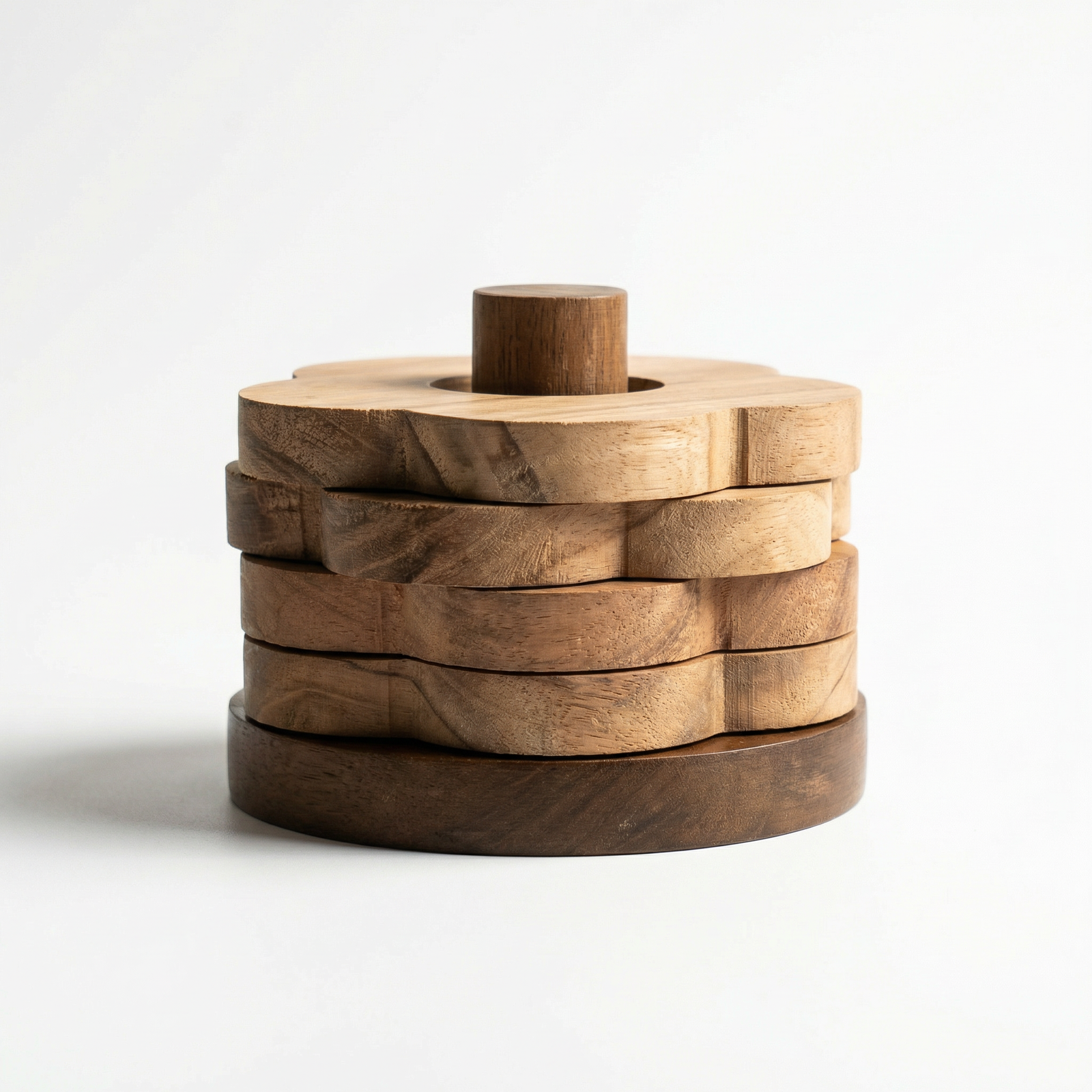 Made from premium natural wood, each coaster is carefully carved and polished to highlight the natural wood grain. The set includes multiple flower-shaped coasters along with a sturdy wooden holder for easy storage and organized display.